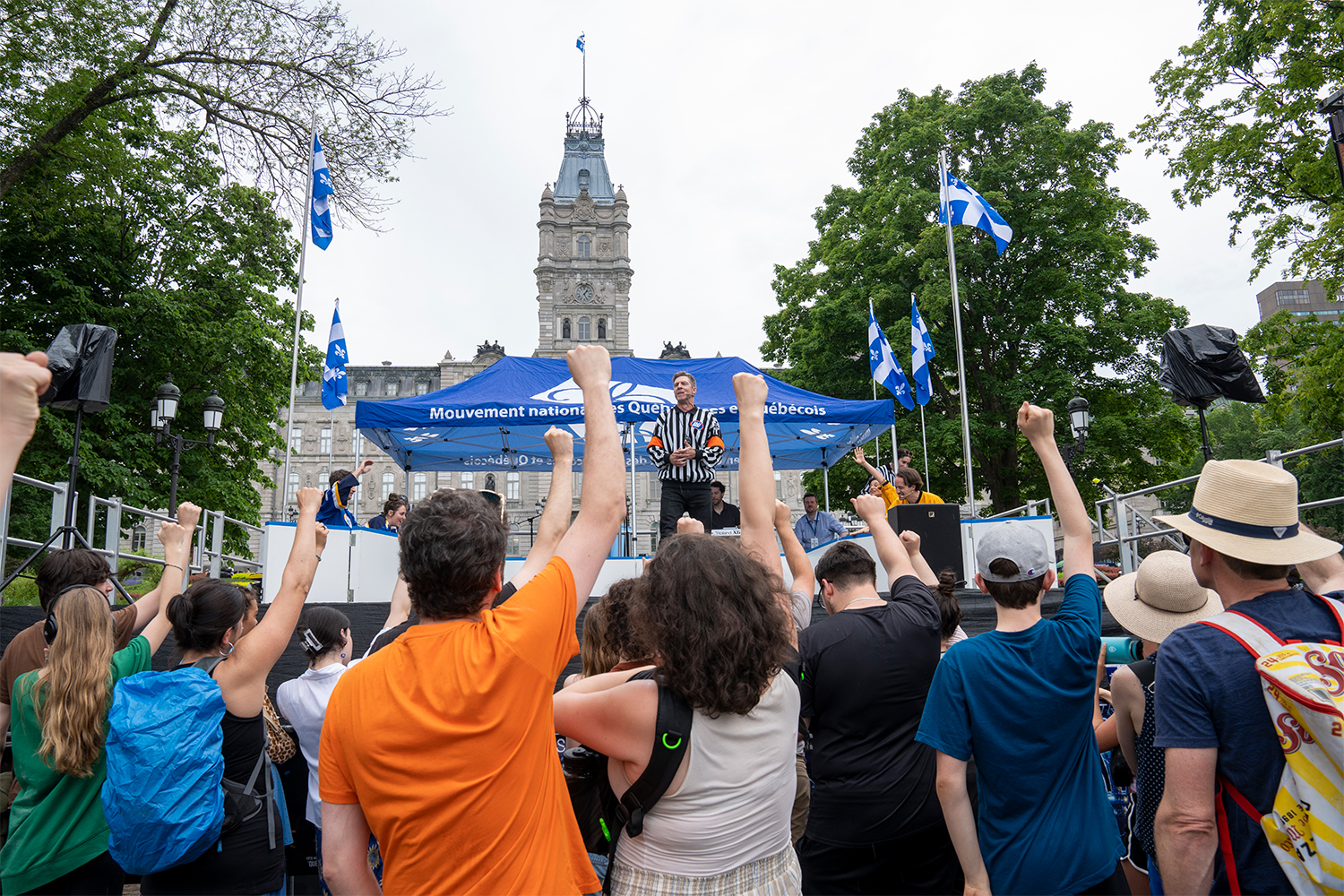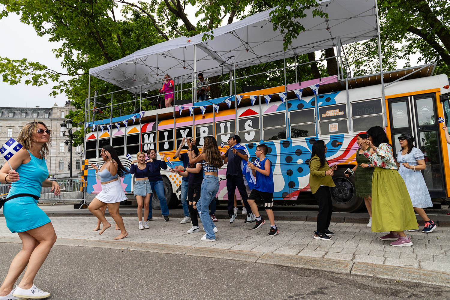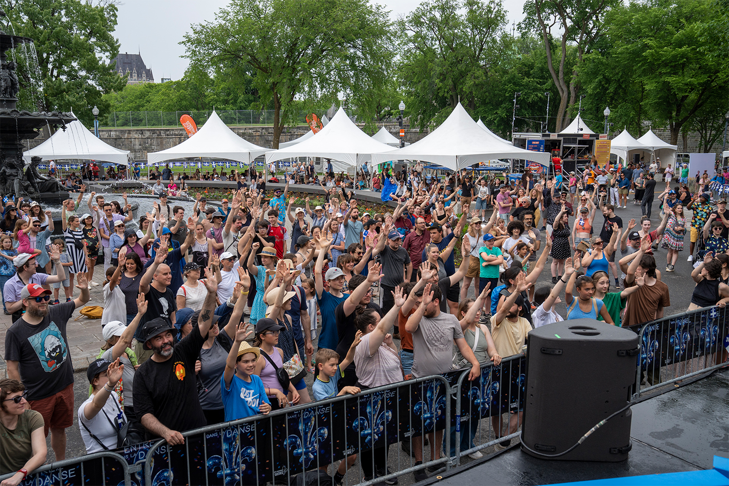 Dès 11 h, les participants pouvaient assister à l’hommage au drapeau qui célébrait le 75e anniversaire du fleurdelisé, avec pour toile de fond, l’hôtel du Parlement. Par la suite, les festivités de la Grande tablée se sont déroulées autour de la Fontaine de Tourny et l’accès au site était gratuit!